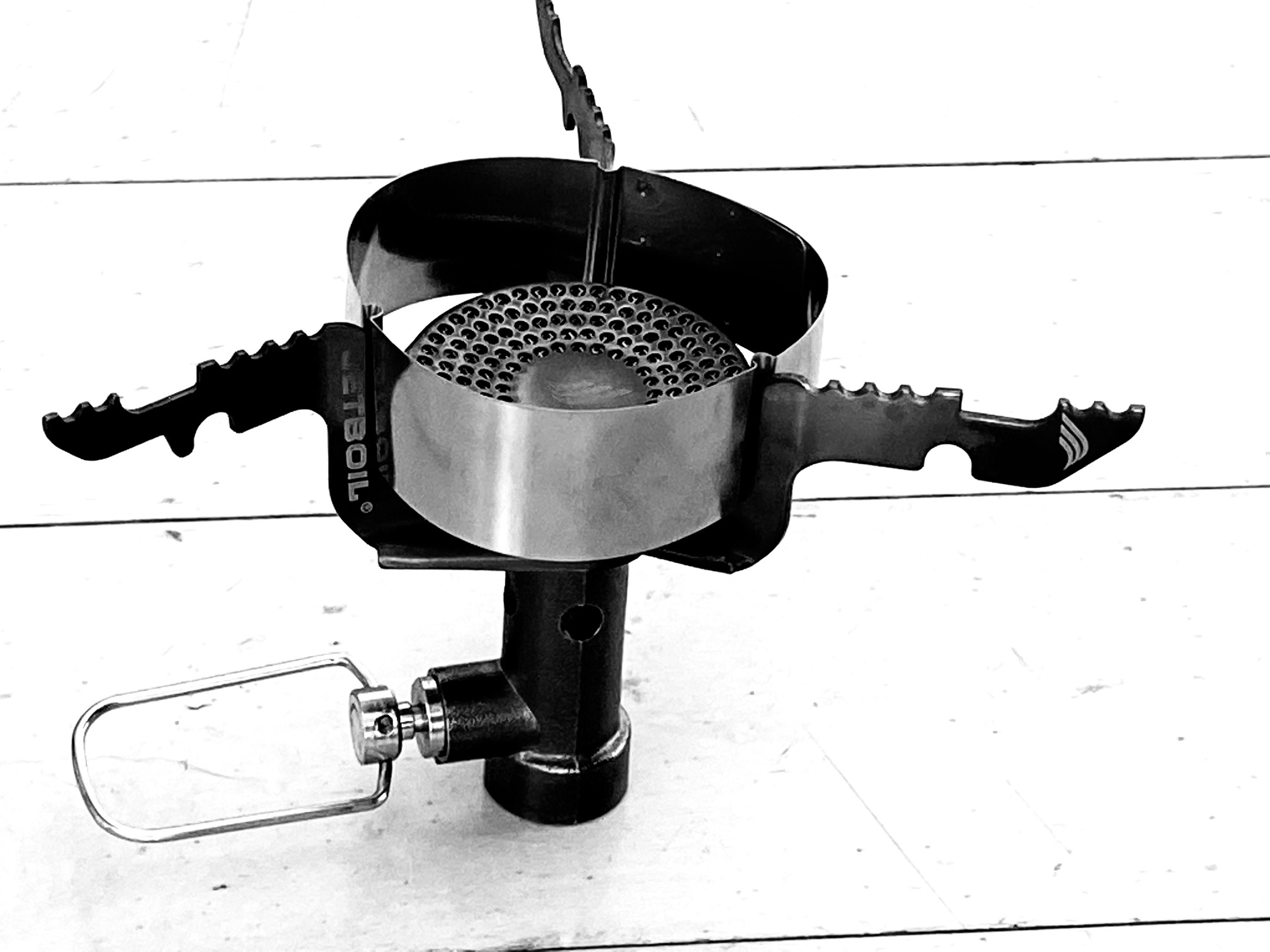 The Ocelot: Stash is designed to fit around the burner head and focuses the hot gasses up to the center of the heat exchanger pot. The Ocelot Stash shines at wind speeds well above 5 mph. Our preliminary testing was able to boil water above 10 mph.